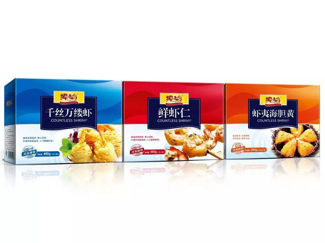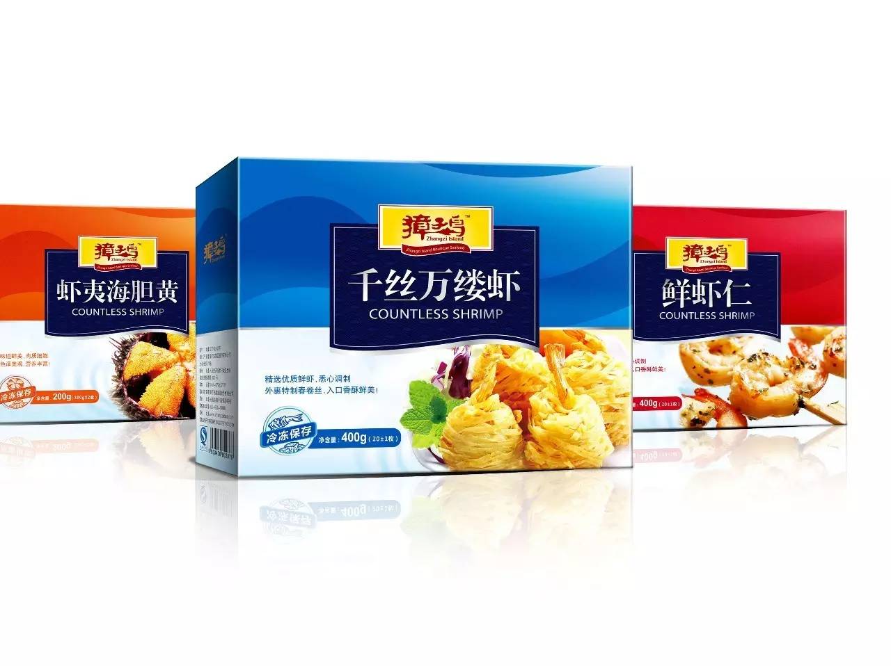 每款包裝上,在包裝頂部有“獐子島”的品牌標(biāo)志,營(yíng)造一種出品牌效應(yīng)的感覺(jué)。