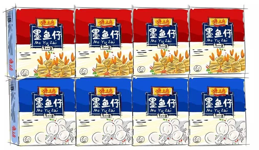 在產(chǎn)品包裝下部,則是相關(guān)產(chǎn)品的美圖展示,讓消費(fèi)者第一時(shí)間知道這是一款什么類(lèi)型的產(chǎn)品,美圖的搭配能夠勾起人們的食欲,達(dá)到一種消費(fèi)心靈暗示的效果。